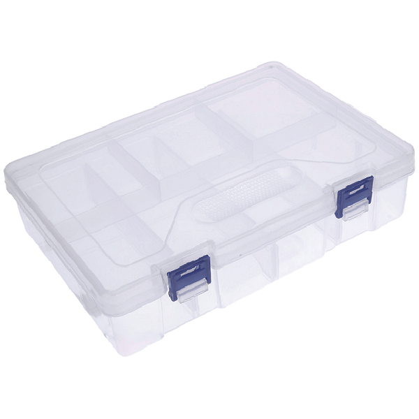 CAJA PLASTICA 2 PISOS 23.4×16.8×6.2cm (8 DIVISIONES)