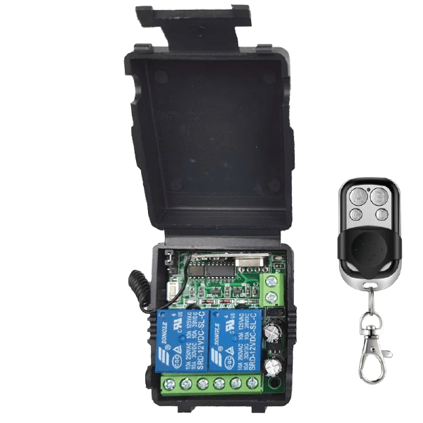 CONTROL REMOTO FRECUENCIA FIJA 433MHz + RECEPTOR CON RELE 12VDC 2 CANALES