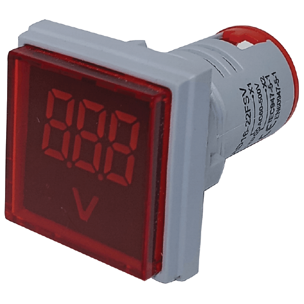 VOLTIMETRO DIGITAL AC CUADRADO 22mm 20-500VAC ROJO
